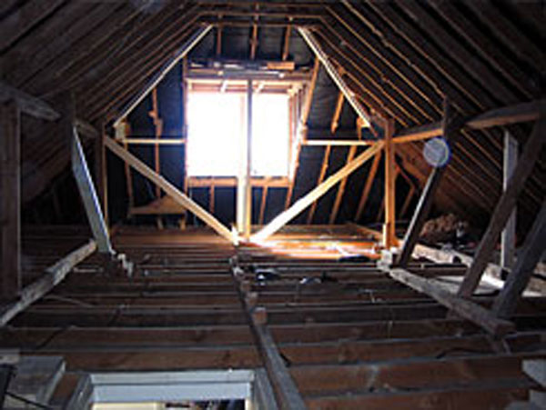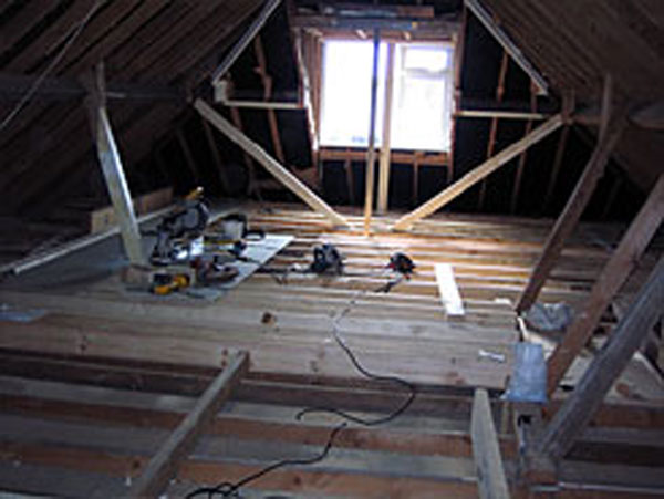New 200mm by 50mm floor joists are laid as per structural calculations.