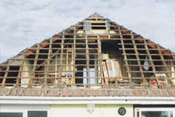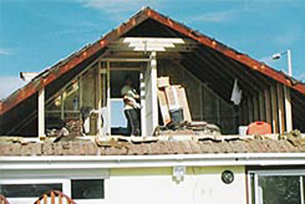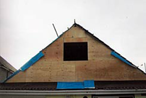 The new gable is built, the roof felted and battened and roof tiling is starting.